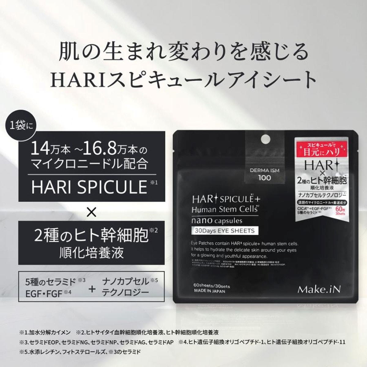 商品名:【Make.iN】ハリスピキュールヒト幹細胞アイシート 60枚入り